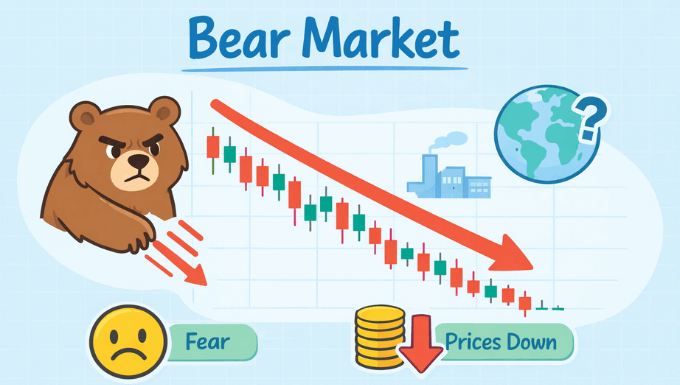A bear market is generally defined as a decline of 20% or more from recent highs, sustained over weeks or months. This drop reflects widespread pessimism, lower risk appetite, and selling pressure across the market.