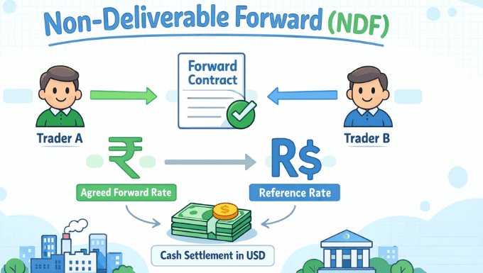 A Non-Deliverable Forward is a financial contract that allows two parties to hedge or speculate on a future exchange rate without physically exchanging the underlying currencies. Instead of delivering the currencies at maturity, the contract is settled in cash based on the difference between the agreed forward rate and a reference spot rate.